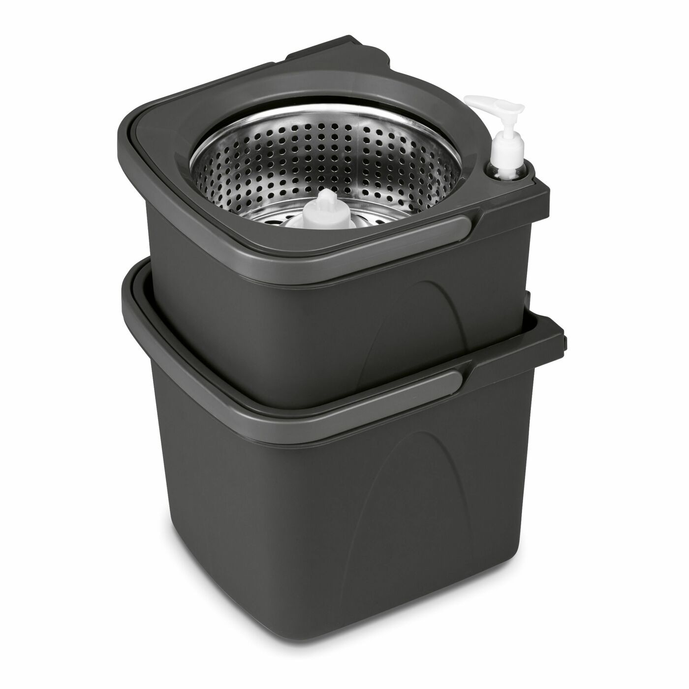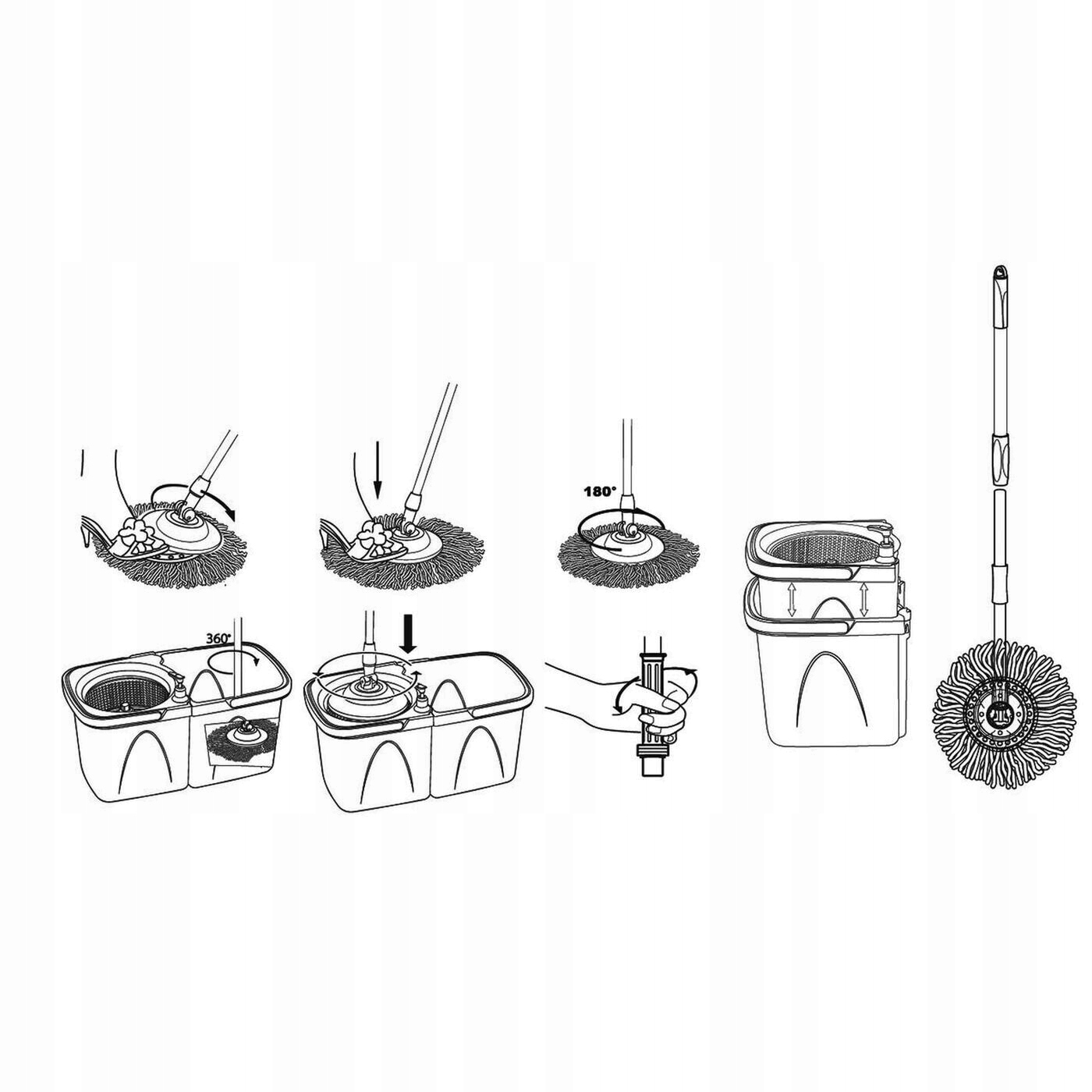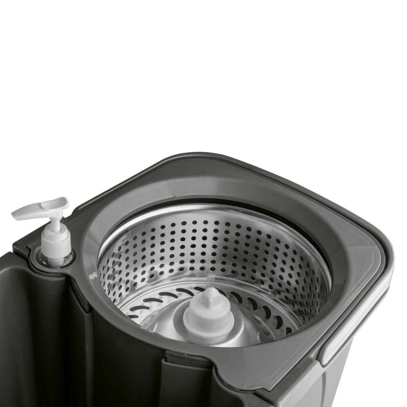 Двойное пластиковое ведро Konighoffer Clean It Double со шваброй для мытья полов очень компактно. Вы можете разделить камеры ведра. Каждый из них имеет собственную эргономичную ручку для переноски. Вы поместите одну часть ведра внутрь другой, что облегчит вам хранение набора. Таким образом, он займет вдвое меньше места, поэтому изделие будет работать даже в небольшой квартире. В модели используется ручная система мытья и отжима шваброй. Используемый для этой цели барабанный механизм изготовлен из нержавеющей стали. Такое решение позволяет регулировать влажность кончика швабры в зависимости от типа пола. Нежные волокна, из которых она изготовлена (и запасной колпачок), очень впитывают влагу и не оставляют царапин на вымытой поверхности. Поскольку ведра изготовлены из пластика, их легко содержать в чистоте. Добавление заглушки в конструкцию улучшает отвод грязной воды после уборки. Кроме того, швабра оснащена телескопической палкой. Это позволяет вам подогнать его под свой рост, эффективно расслабить мышцы во время работы, свести к минимуму усилия при ежедневной уборке и сохранить идеальный диапазон и свободу движений. Если у вас закончится моющее средство, вы можете воспользоваться входящим в комплект дозатором жидкости. Его емкость составляет 25 мл.