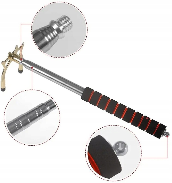 Телескопический мостик для бильярда изготовлен из нержавеющей стали 201 и может удлиняться до длины от 32,5 до 150 см. Ручка покрыта губкой высокой плотности для удобства использования.