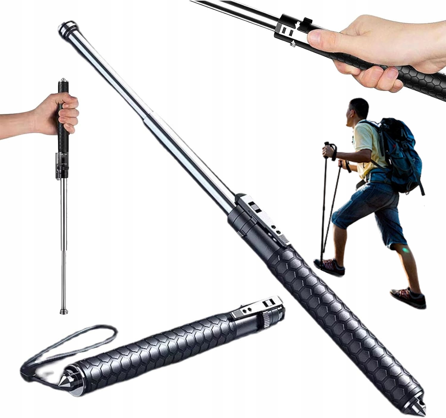 • - Телескопическая палка для самообороны, адаптированная к различным потребностям, из 3 частей. Ручка оснащена стеклобоем на конце для облегчения извлечения.