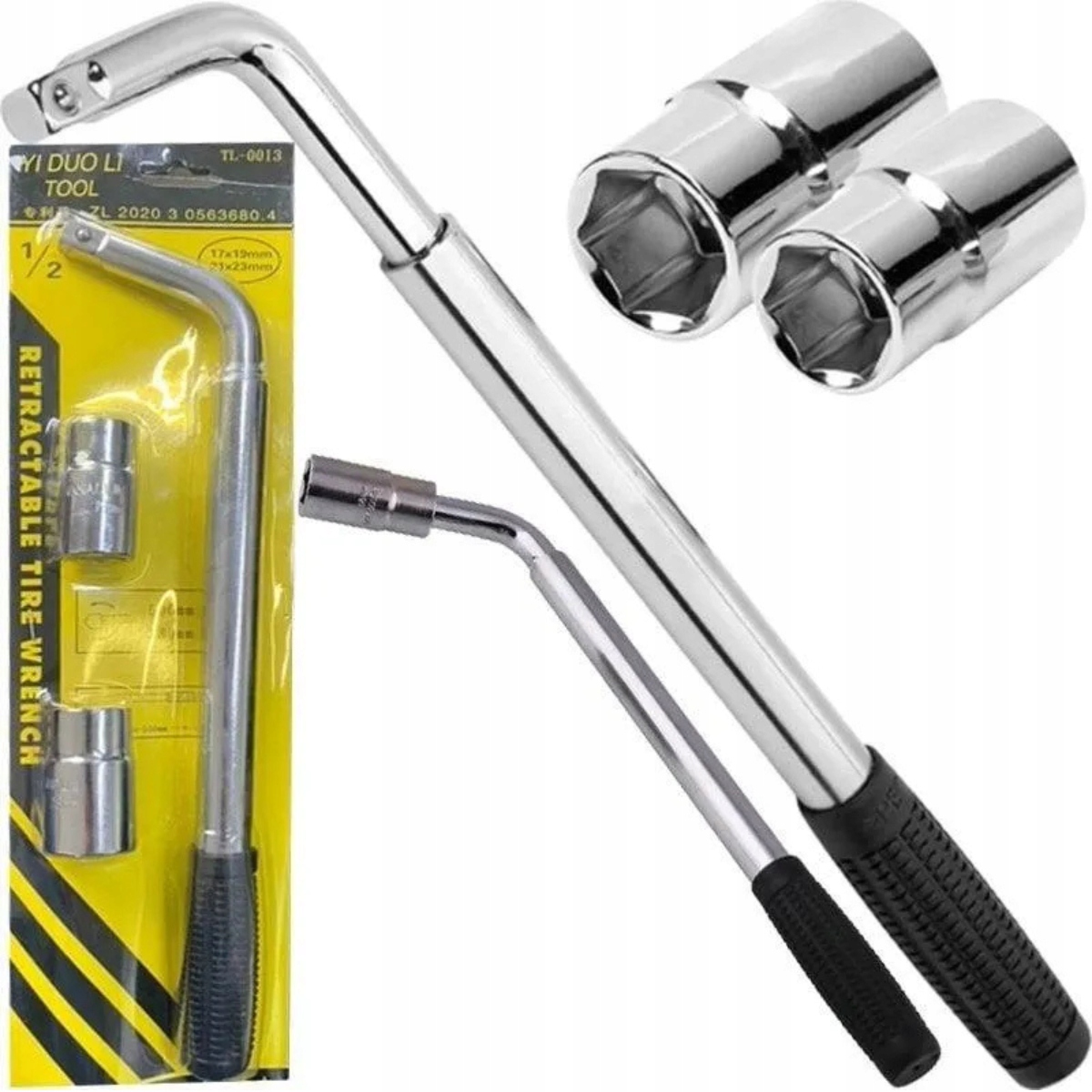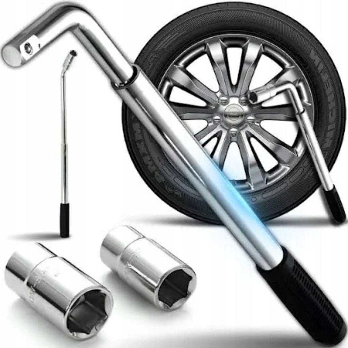 Сильный, телескопический ключ b> для колес с двумя двумя двумя крышками (17–19 мм, 21-23 мм).