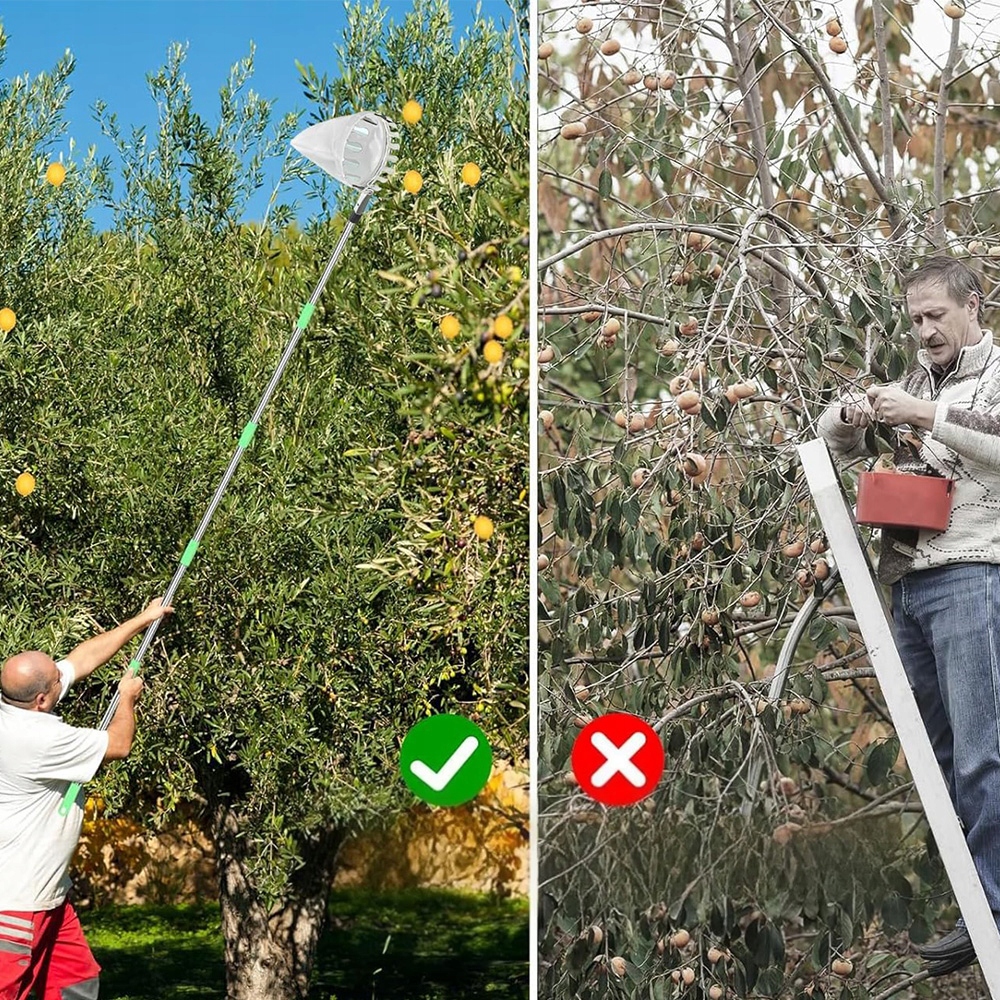 Забудьте о опасном восхождении на дерево или нестабильной лестнице! Наш телескопический коллекционер гарантирует комфорт и безопасность во время сбора урожая, защищая фрукты от повреждений. Это важный инструмент для каждого любителя садоводства и фруктов.