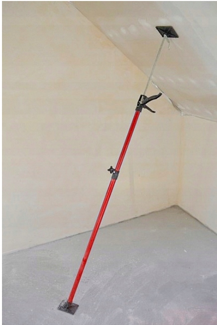 Телескопические опоры предназначены для временного крепления строительных и конструктивных элементов. Чаще всего используется для крепления гипсокартона или других плит во время монтажа и постоянного привинчивания, например, на потолках. Регулировка длины осуществляется в два этапа путем первоначального снятия с корпуса и фиксации пружинными штифтами, а также точного выдвижения и регулировки опоры с помощью кнопки рычага. Максимальная безопасная нагрузка – 30 кг. Рабочий диапазон 115-290см.