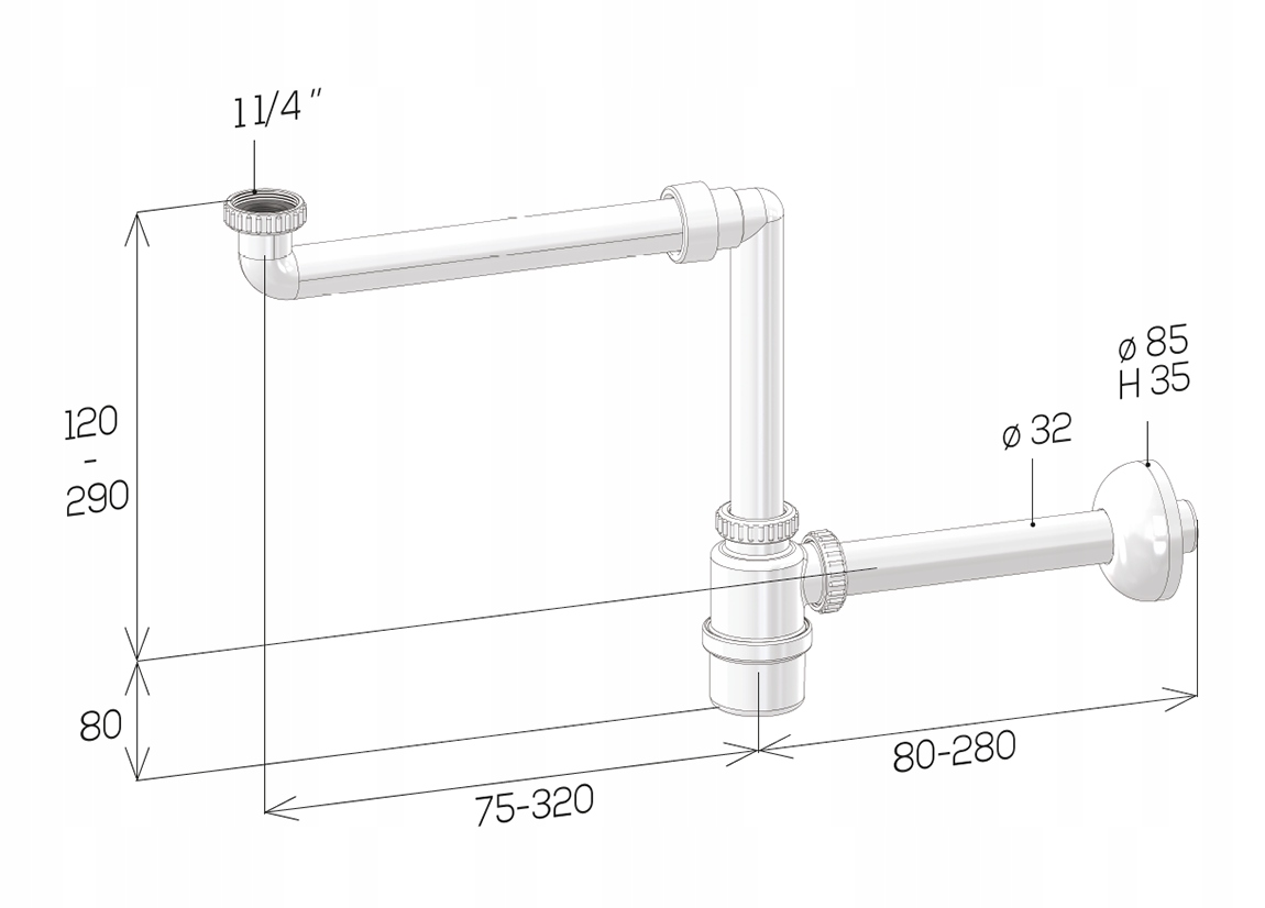 ✅ Регулировка дренажной трубы в сифоне : в диапазоне от 80 мм до 280 мм