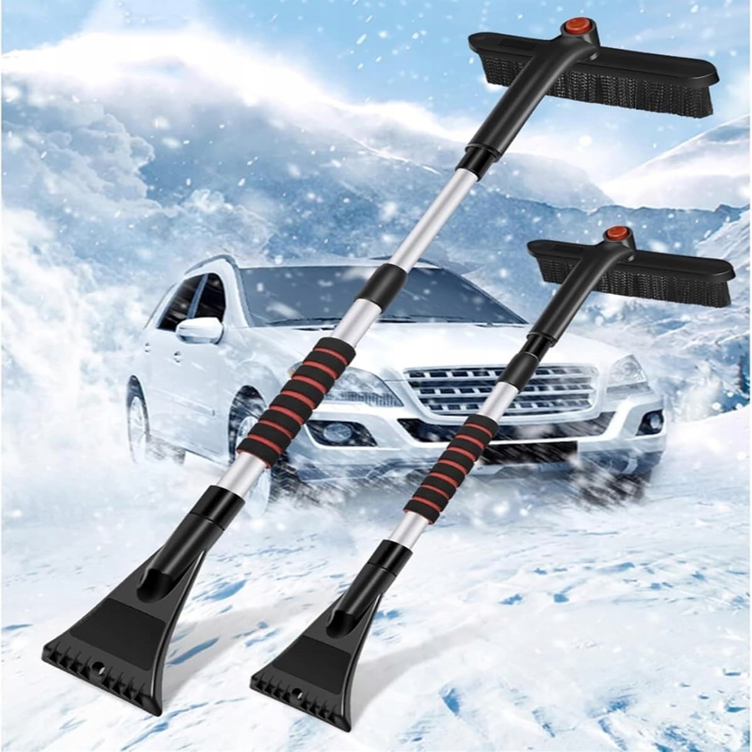 ТЕЛЕСКОПИЧЕСКИЙ СКРЕБОК 3 В 1 ДЛЯ УБОРКИ СНЕГА АВТОМОБИЛЕЙ 66-88 СМ