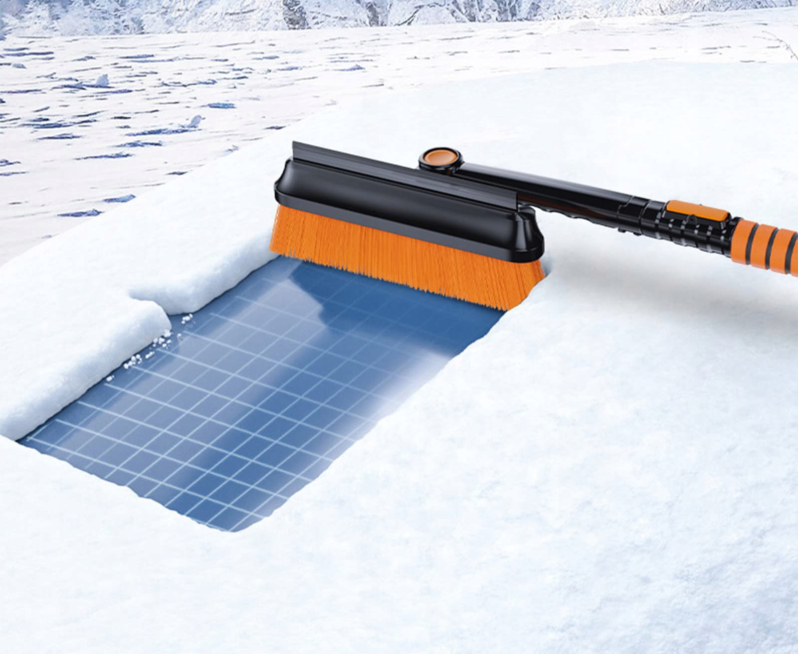 Скребок-щетка имеет удобную алюминиевую телескопическую ручку, благодаря чему вы без особых усилий сможете легко и без особых усилий убрать снег со всей крыши вашего автомобиля.