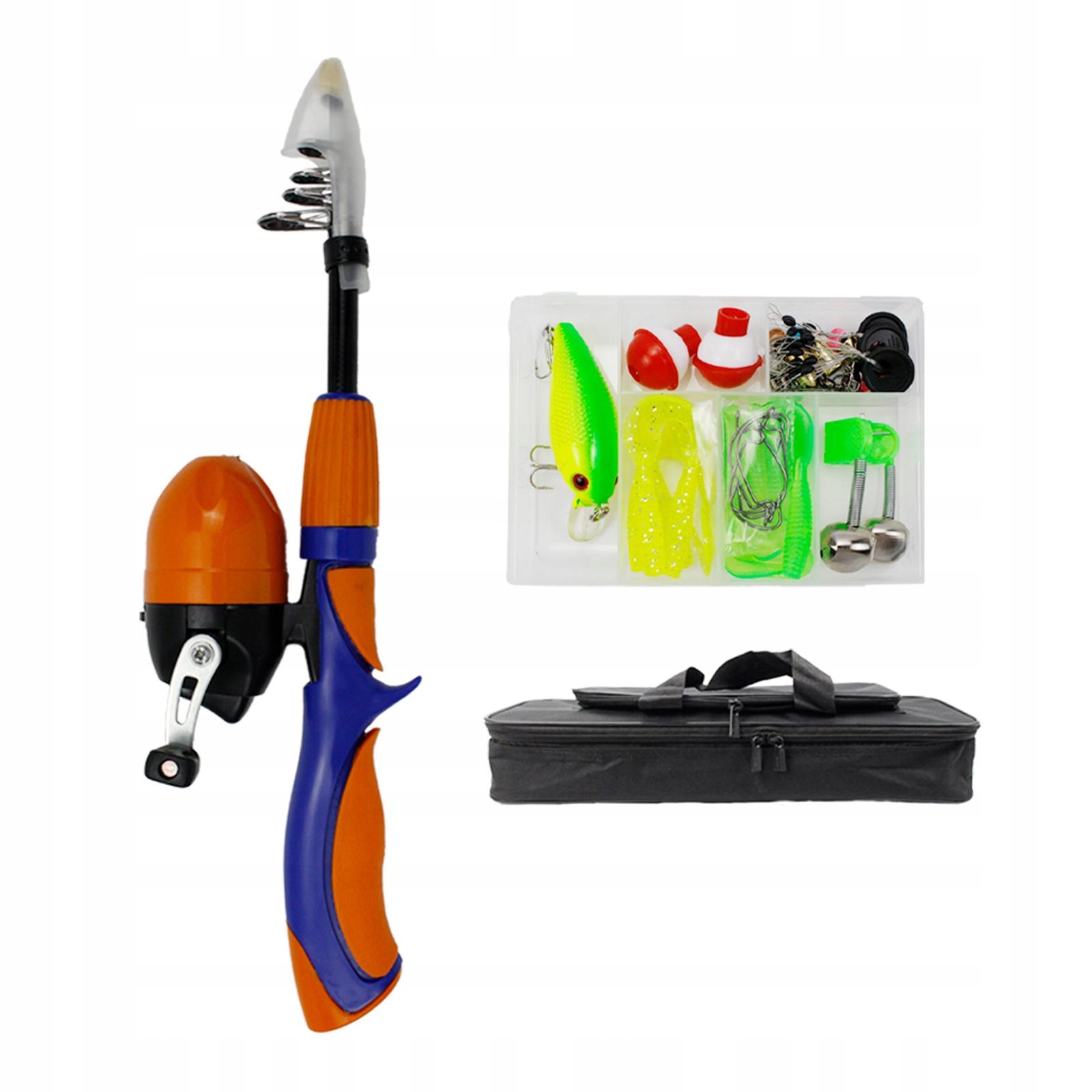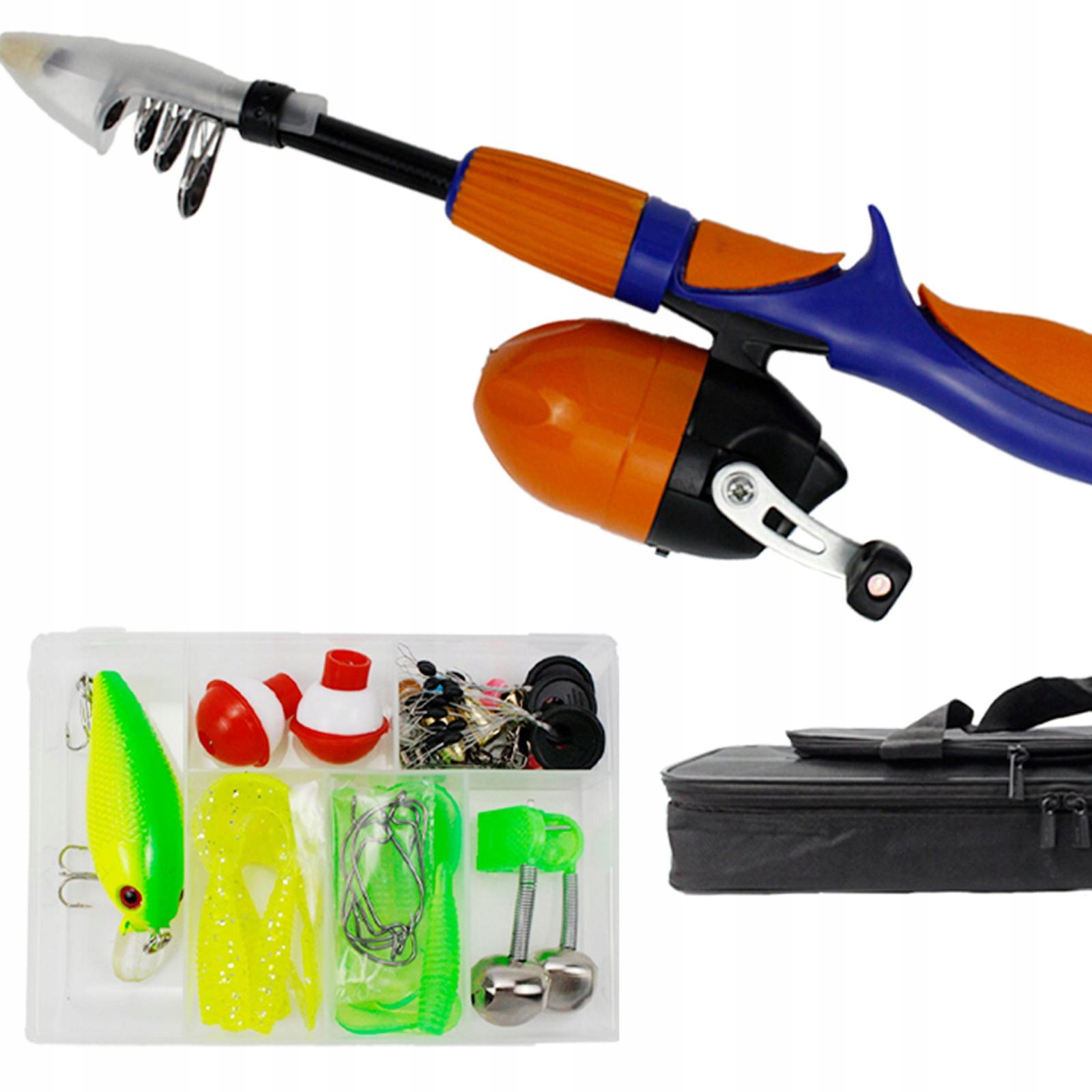 Рыболовный набор: этот рыболовство для детей содержит телескопический стержень, катушку, транспортные сумки и другие аксессуары. Это может удовлетворить потребности вашего ребенка в рыбалке и не требует узабоченных операций.