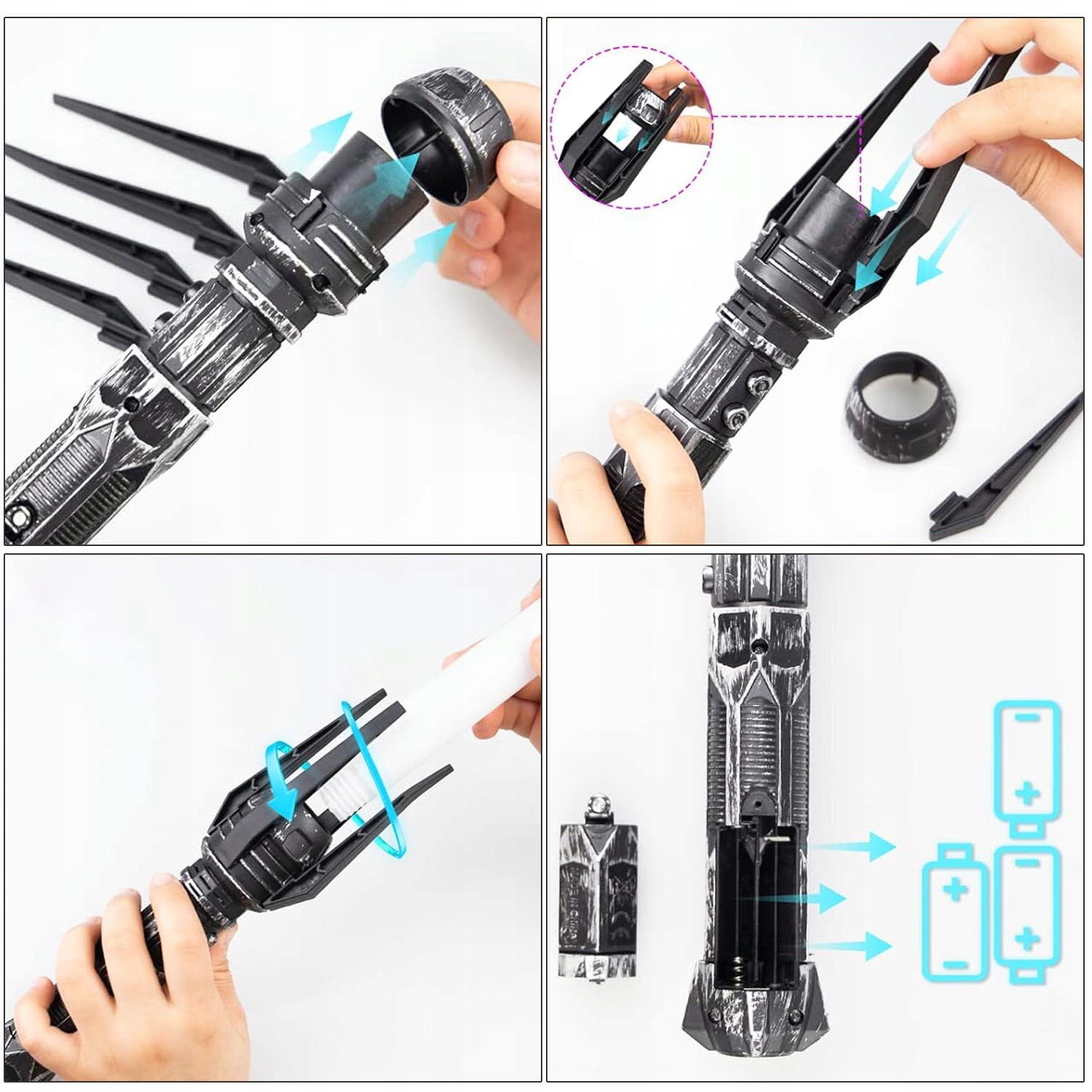 Светящийся световой меч изготовлен из высококачественного мягкого пластика, прочного и долговечного, не содержащего BPA, безопасного и нетоксичного. токсичен для детей, а металлическая ручка удобна в использовании и захвате, что помогает детям тренировать гибкость пальцев. (Примечание: необходимо добавить 3 батарейки типа ААА.)