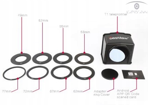 В комплект входит 8 переходных колец, подходит для любой камеры с диаметром объектива от 49 до 77 мм.