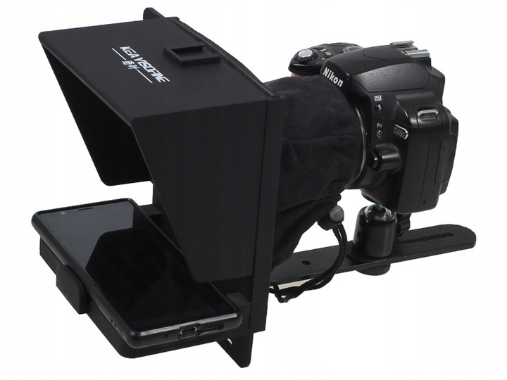 Дополнительно в комплект входит рейка для крепления камеры/камеры, прикручиваем ее одной стороной к суфлеру, другой к камере (винт 1/4") и затем надеваем на нее бленду суфлера. Суплер можно также можно установить на фотографический штатив с резьбой 1/4 4 дюйма.