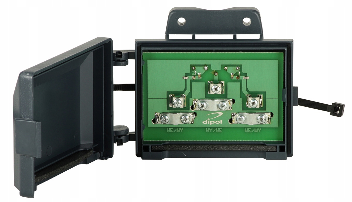 Диапазон 5–862 МГц, проходное затухание 4 дБ, сопротивление ввода-вывода 75 Ом. Он позволяет подключить к одному ТВ-приемнику две антенны даже одного диапазона или может служить антенным разветвителем и в этом случае позволяет подключить два ТВ-приемника к одной антенне. Он построен на развязывающем трансформаторе. Можно прикрепить к мачте. Между входами и выходом проходит постоянный ток, что позволяет запитывать антенные усилители по коаксиальному кабелю.