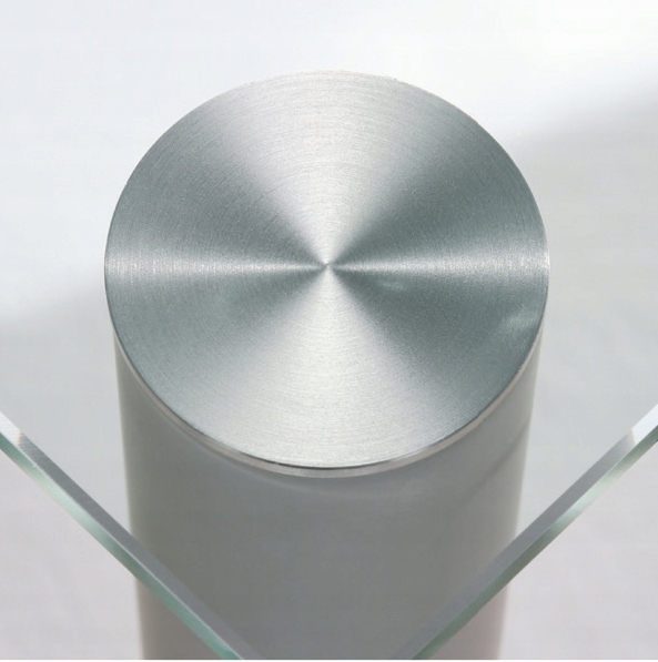 Использованное закаленное стекло в пять раз более устойчиво к разрушению, чем обычное флоат-стекло. Для соединения стеклянных и алюминиевых элементов была использована технология высочайшего УФ-склеивания. В этой технике используется специальный клей, затвердевающий под действием УФ-лучей. Благодаря этому приему клей распределяется по всей поверхности. Это обеспечивает равномерное распределение веса, что позволяет выдерживать большую нагрузку на стол.