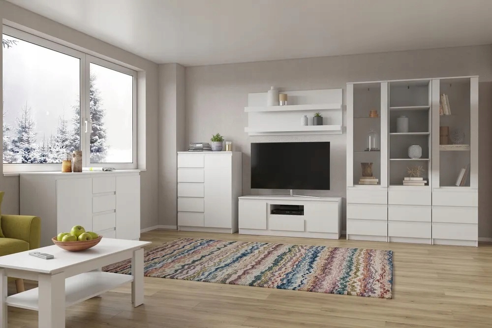 ТЕЛЕВІЗОРНА ШАФА ТЕЛЕВІЗОРНИЙ КОМОД БІЛИЙ Килимок для ящиків 135см STERN TV-135 Meble-Craft