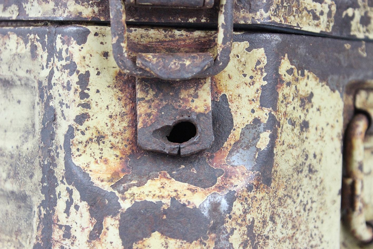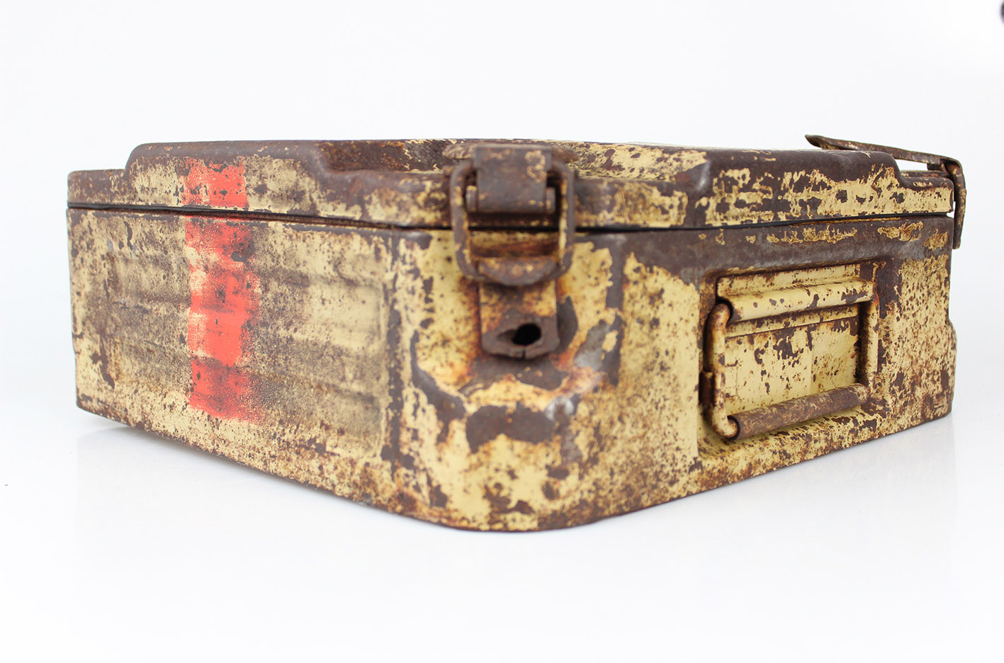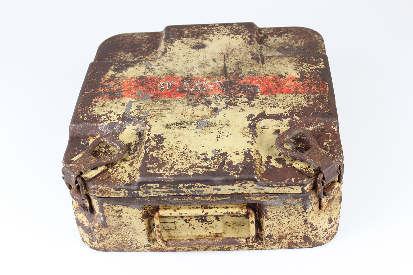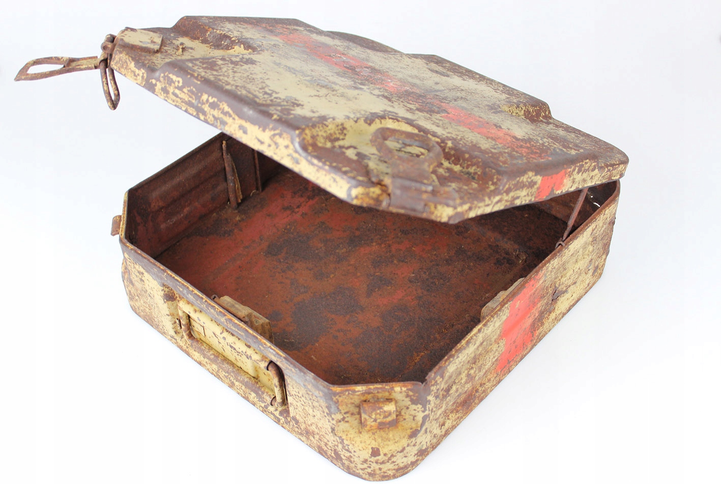 Оригинальная транспортная коробка для Tellermine 42. Коробка, как вы можете видеть на прикрепленных фотографиях, - это чердака, места в красивой краске и места с отверстиями в интерьере для оригинальных деревянных колышков. При левом закрытии выстрел виден именно на фотографиях.