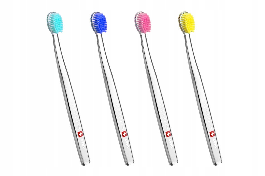 была разработана швейцарскими специалистами в области гигиены и здоровья полости рта. Мягкая зубная щетка Tello 4920 характеризуется чрезвычайно толстыми щетинками, что обеспечивает эффективную и тщательную очистку зубов. Мягкие, гибкие волокна, правильно отполированные на концах, безопасны для наиболее чувствительных десен. Tello 4920 Мягкая зубная щетка рекомендуется для людей, которые предпочитают мягкие зубные щетки, безопасные для десен, людей с чувствительными десен и обнаженной зубной щеткой. чьи каждые волосы в конце имеют дополнительные 4 волокна, которые увеличивают плотность щетинок и, следовательно, точность очистки и делают кисть чрезвычайно деликатной для десен. Каждое из волокон имеет округлый конец, благодаря которого он чрезвычайно деликатный даже для самых чувствительных и больных десен. Превосходная форма чистящей головки и ее небольшой размер гарантируют чистку комфорта, позволяет легко добраться до кисти до задних зубов без эффекта втирания десен и щеков. Зубная щетка Tello слегка скользит по зубам, не раздражая слизистые оболочки. Эргономичная, правильно профилированная ручка обеспечивает правильную чистку без использования чрезмерной силы. Соответствующая конструкция ручки зубной щетки Tello предотвращает слишком сильное давление, которое защищает десны от истирания. Элегантный внешний вид кисти и 9 модных цветов, безусловно, сделает ваш ежедневный уход за полостью рта.