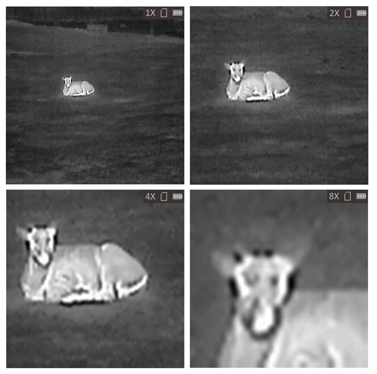 Чтобы получить более подробную информацию о модели Lynx PRO LH15, вы можете увеличить цифровое изображение x2 x4 x8, как вы можете видеть на прилагаемом фото. Тепловизор имеет 1,47-кратный оптический зум