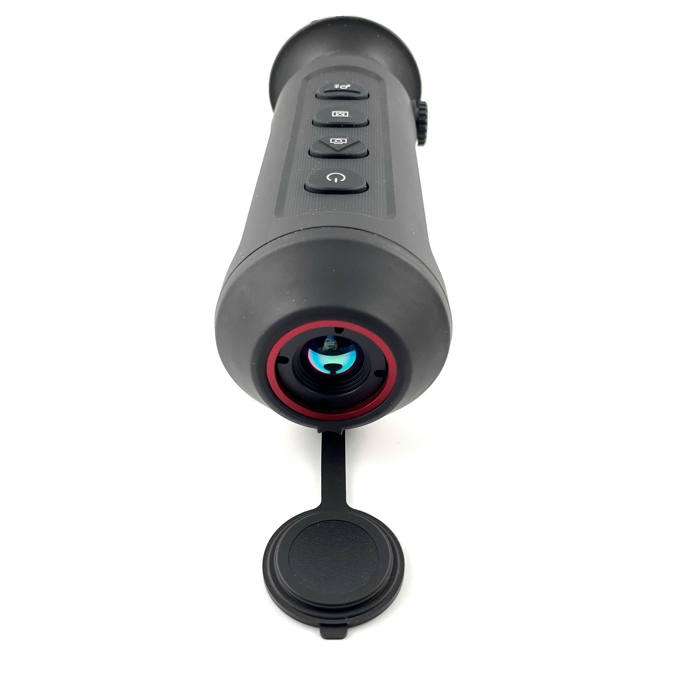 Управление всем тепловизором осуществляется с помощью удобных и сенсорных кнопок. Каждый из них соответствующим образом описан или проиллюстрирован, что позволяет начать пользоваться камерой сразу после ее извлечения из коробки. Все наиболее важные опции доступны одним нажатием одной специальной кнопки. Меню устройства выведено сбоку, поэтому вам не придется прерывать наблюдение для изменения настроек. Кнопки расположены так, чтобы обеспечить максимальную эргономику. Каждая из них размещена отдельно, а продуманные расстояния между кнопками позволяют легко получить доступ ко всем функциям, а их разделение помогает избежать случайного нажатия.