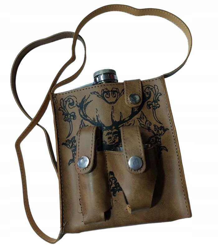 Классная фляга из нержавеющей стали, украшенная крутым охотничьим мотивом. Емкость 500 мл. Это обеспечит спокойное и культурное употребление алкогольных напитков в любых условиях. В комплект входят два стальных стакана. Размеры: 13 х 2,5 х 15 см. Стаканы:3х25мл и многофункциональный нож. Все упаковано в декоративный чехол из эко-кожи.