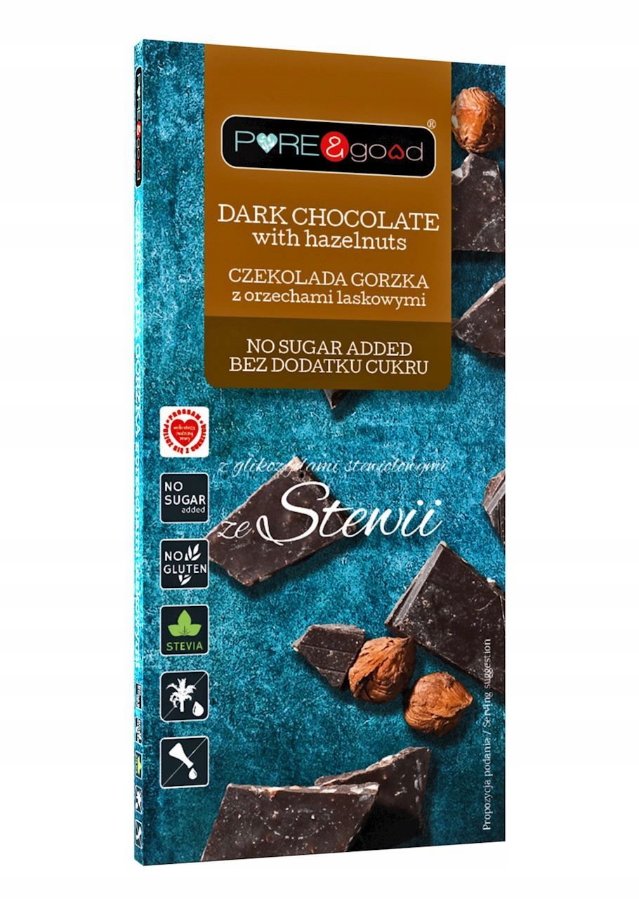 ТЕМНЫЙ ШОКОЛАД С Фундуком СО СТЕВИЕЙ, БЕЗ ДОБАВЛЕНИЯ САХАРА, БЕЗ ГЛЮТЕНА 125 г - PURE&GOOD (PURE&GOOD) - PURE&GOOD