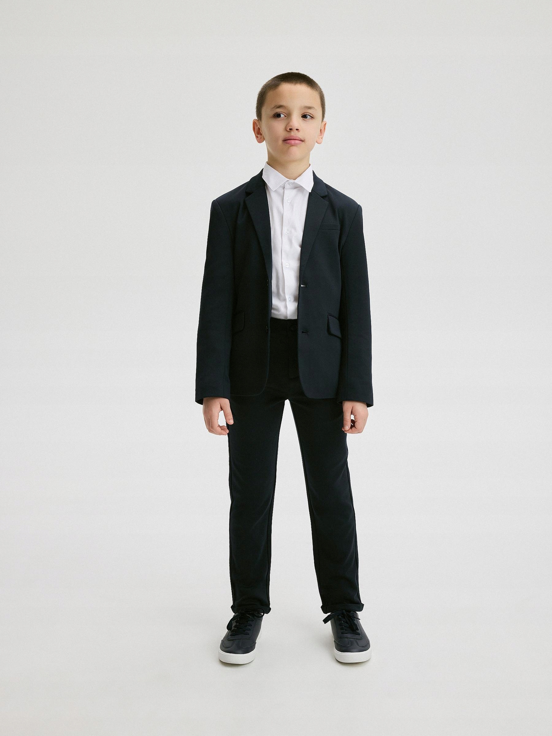 ТЕМНО-СИНИЕ КЛАССИЧЕСКИЕ ДЛИННЫЕ БРЮКИ С ХЛОПКОВЫМИ ЧИНОСАМИ RESERVED 164
