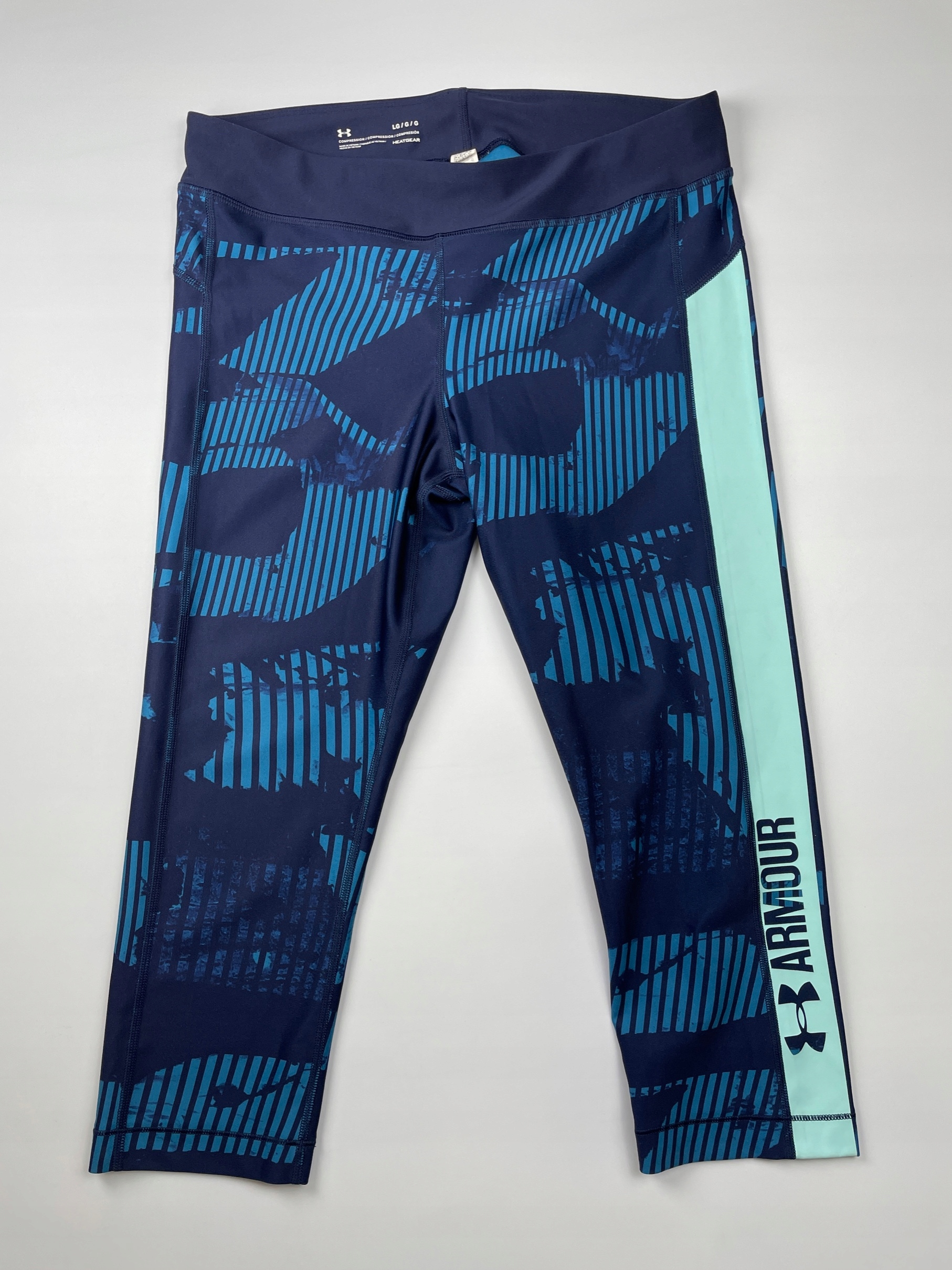 Спортивные леггинсы темно-синего и синего цвета с рисунком 3/4 UNDER ARMOR размер L