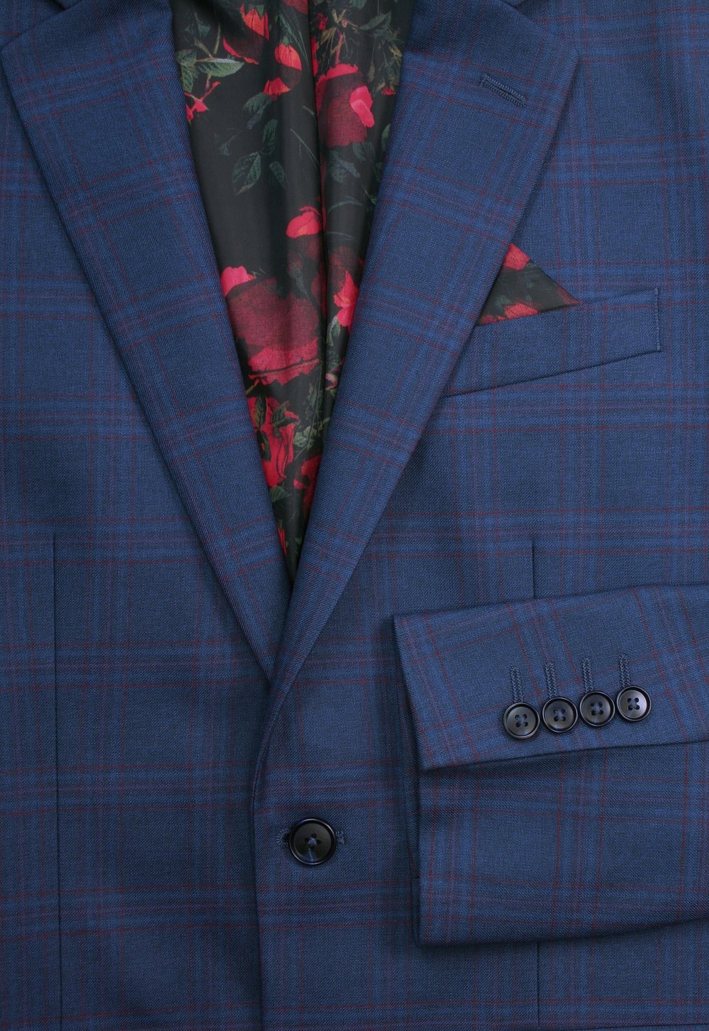 Элегантный костюм SLIM, темно-синий с клетчатой застежкой, на двух пуговицах, брюки со складками - VICTORIO