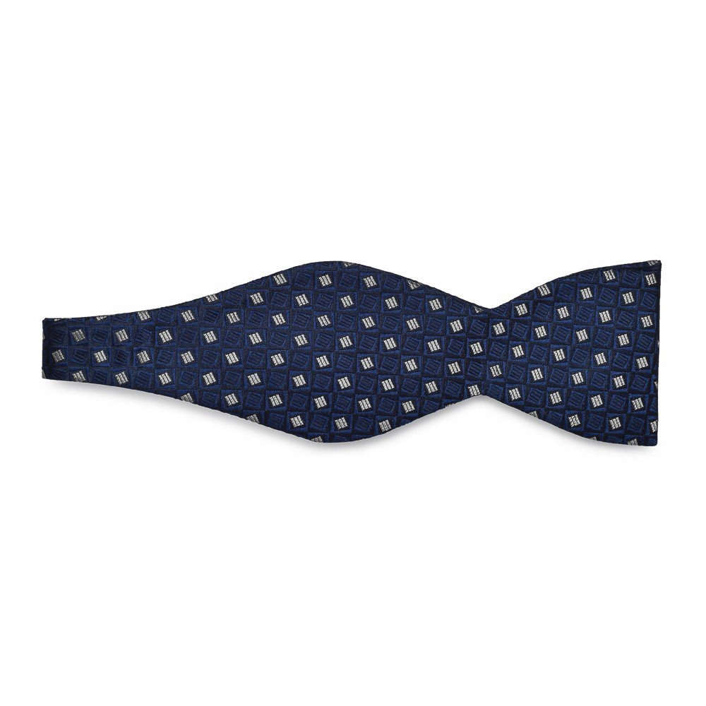 Галстук-бабочка темно-синего цвета с темно-синими и серебряными квадратами.