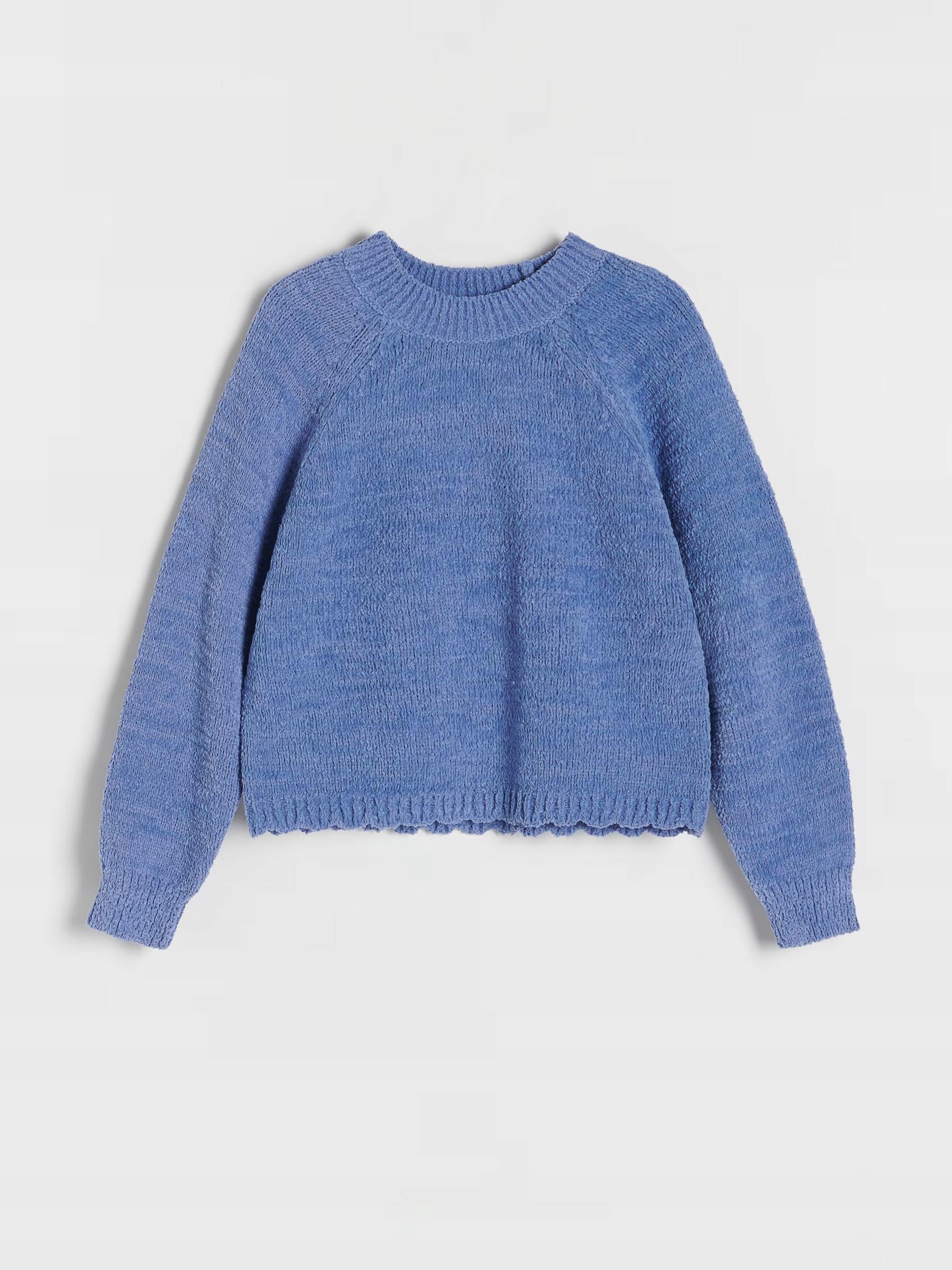 ТЕМНО-СИНИЙ ТРИКОТАЖНЫЙ СВИТЕР С ДЛИННЫМ РУКАВОМ, КРУГЛЫМ ВЫРЕЗОМ, ЗАРЕЗЕРВИРОВАН 146