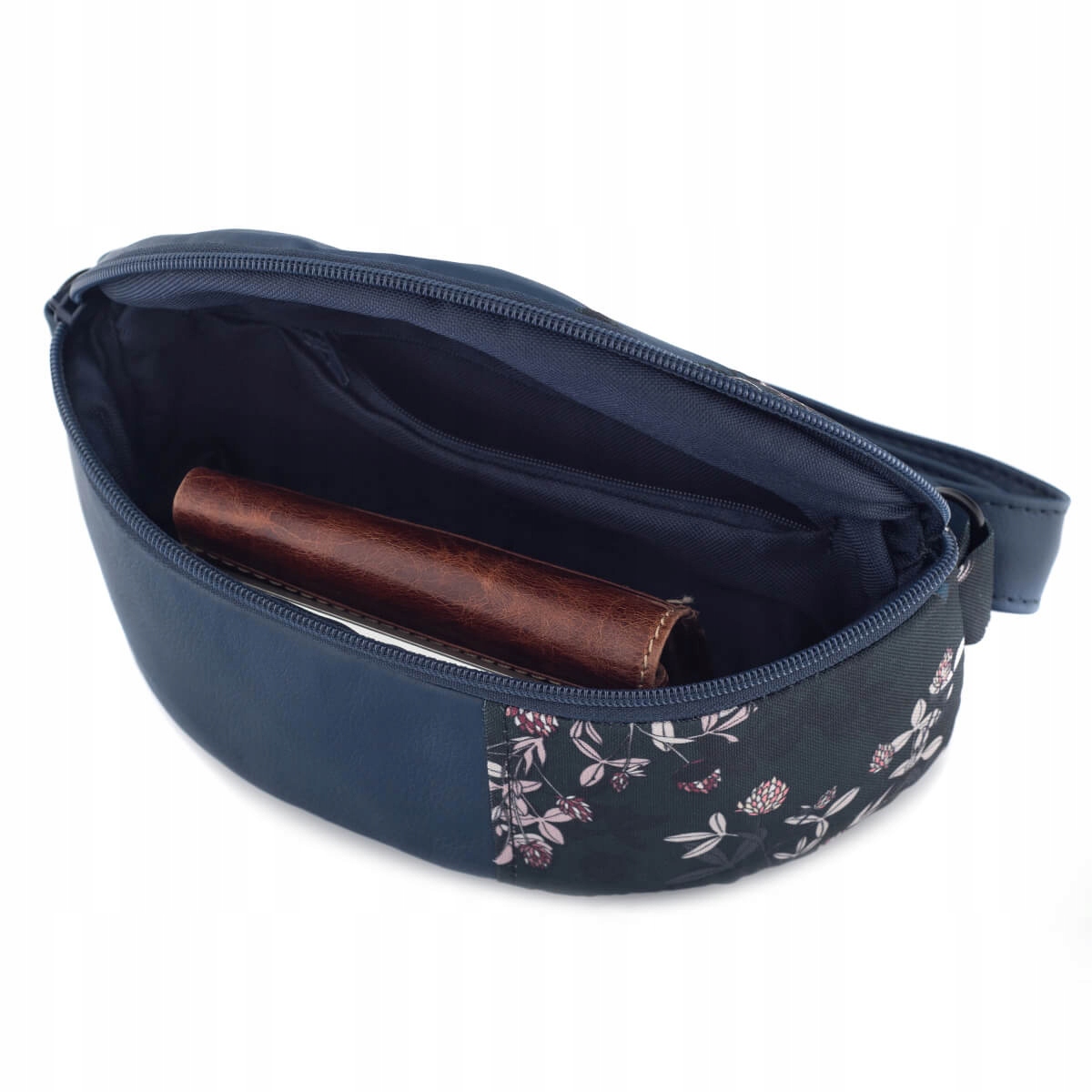 Темно-синя жіноча поясна сумка з екошкіри Belveder Flowers