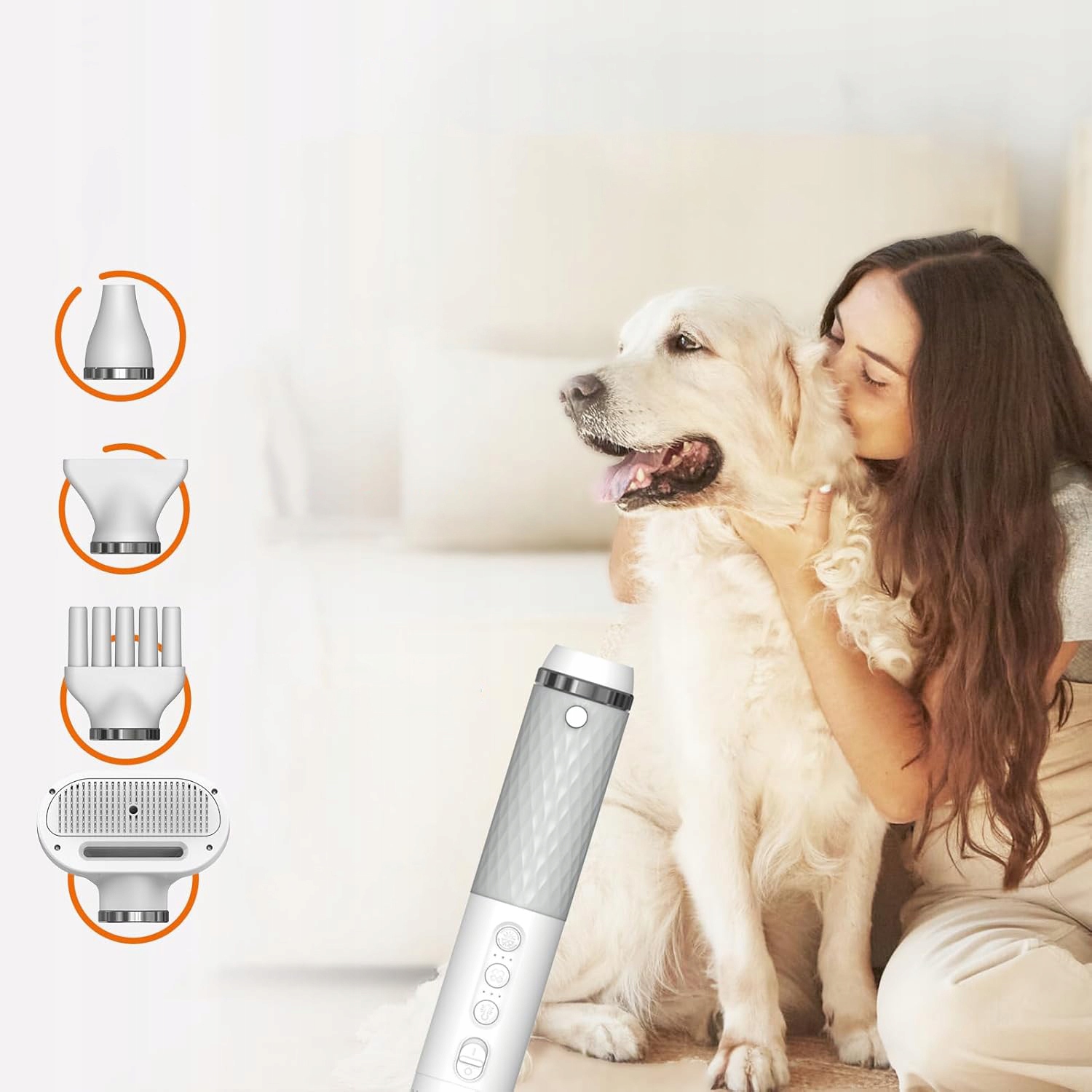 Вы можете выбрать правильное прикрепление для сушки, чистки или расчесывания, идеально соответствующего потребностям различных животных. заботиться во время сушки.