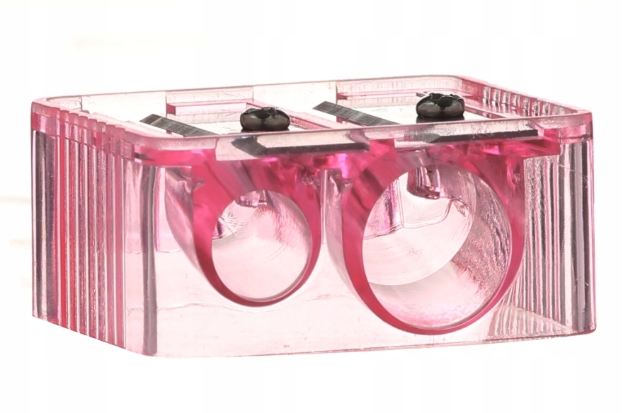 Косметическая точилка практична и универсальна, поскольку она двойная – имеет два отверстия разного диаметра, поэтому можно затачивать как тонкие, так и толстые карандаши.