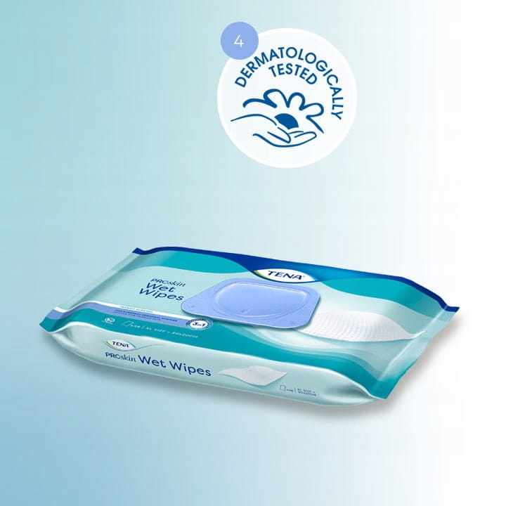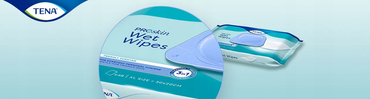 Влажные салфетки TENA ProSkin удобны в использовании и позволяют легко заменить впитывающие изделия.