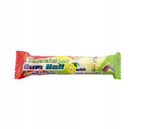 Шар для теннисной жвачки с кислым порошком 20G Четыре кислых жевательных резинки с кислым порошком в форме теннисных шариков. Состав: сахар, резиновое основание, глюкозовый сироп, кислота: E330; Влагия поддерживает вещества: E420, E422; ароматы, кокосовое масло, антиоксиданты: E320, E321; красители