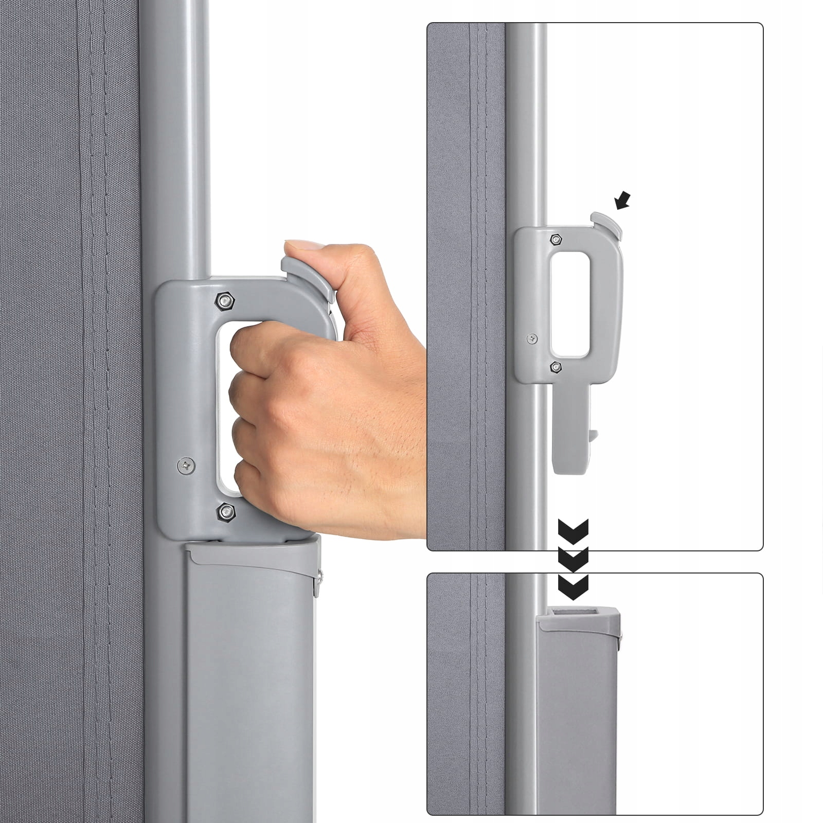 Тент от солнца боковой, серый, регулируется по длине до 3,5 метров.