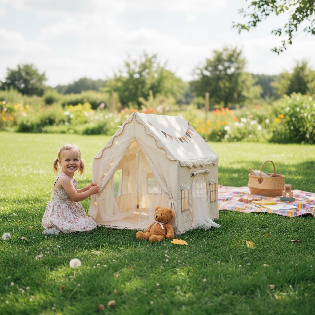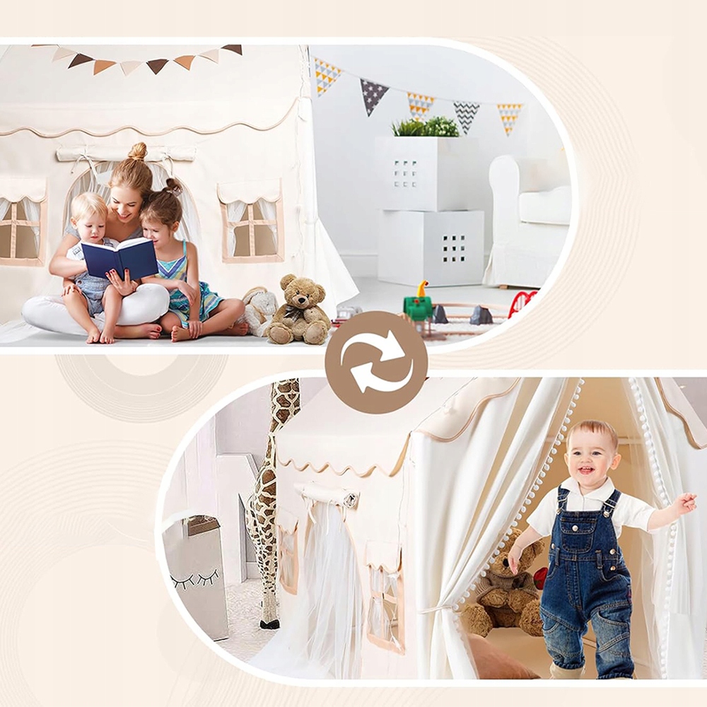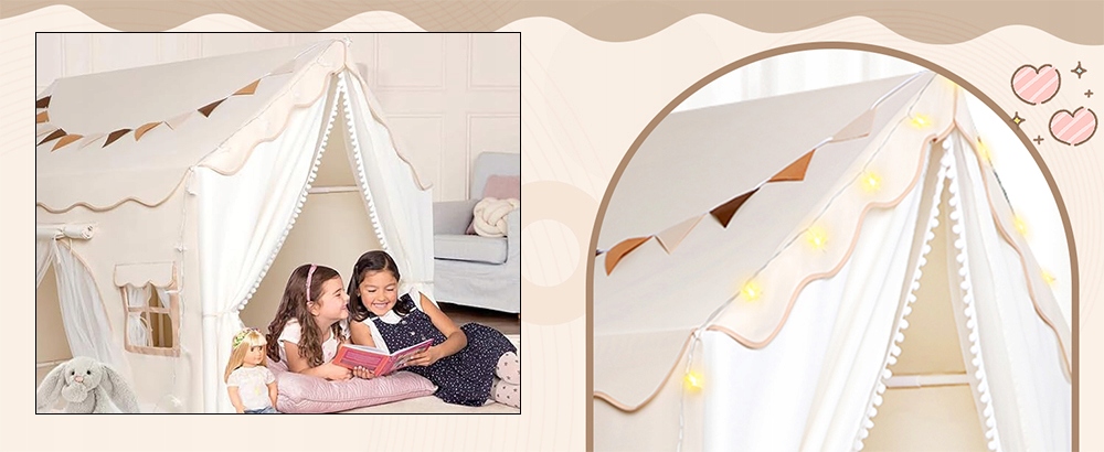 Наша высококачественная детская палатка для дома имеет две двери и регулируемые шторы, создавая идеальную игровую зону.