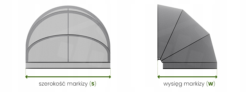 Данная модель выпускается в двух вариантах. Мы можем заказать маркизу в прямой версии, доступной во всех размерах, или полукруглой маркизе, доступной в выбранной ширине и проекции.
