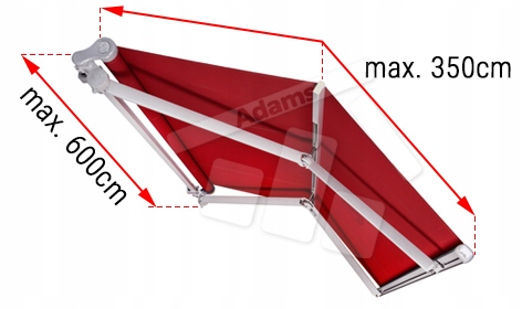 ВНИМАНИЕ! На аукционе выставлен тент размером 480х300см. Маркиза включает в себя ручное управление, левую сторону управления (механизированную маркизу можно приобрести на других аукционах), коричневый цвет конструкции, ткань REC143, тент не имеет балдахина. Другие размеры, цвета и конфигурации продукции доступны на др. аукционы. Вы приобретаете товар только в указанной комплектации. Возврат невозможен, потому что он сделан на заказ. Макс. ширина в этой модели 600см, а вылет 350см.