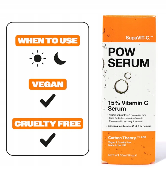 Сыворотка C Supavit от теории углерода - это революционный продукт, который сочетает в себе силу витамина С и натуральных ингредиентов, чтобы обеспечить вашу кожу с максимальным обновлением и жизненной силой. Благодаря высокой концентрации 15% витамина С, сыворотка действует не только как интенсивный осветляющий агент, но и как мощный антиоксидант, защищая кожу от вредных эффектов свободных радикалов.
