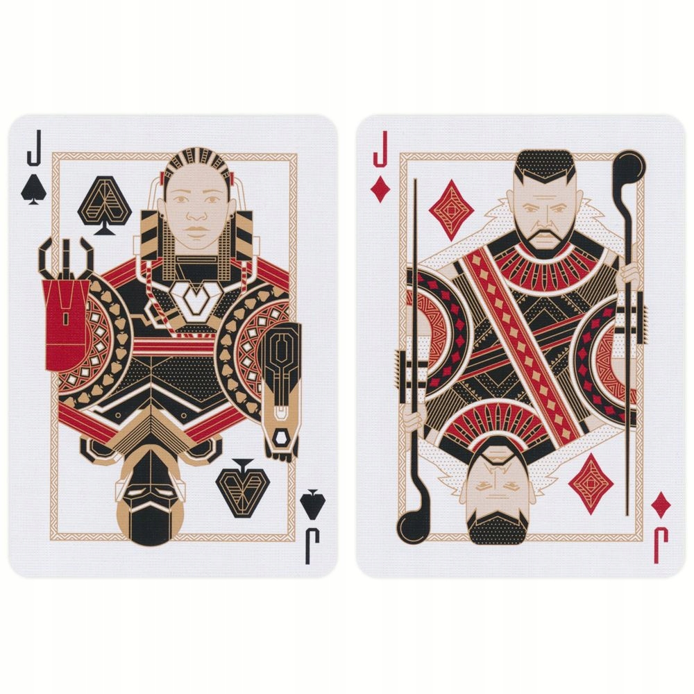 Игровые карты "Black Panther" - это прекрасно разработанный набор карт, вдохновленные культовым фильмом Marvel - Black Panther. Эти карты имеют элегантный черный цвет с металлическими серебряными и фиолетовыми акцентами, отражающими футуристический и технологически продвинутый мир Ваканды. На обратной стороне карт представлен геометрический рисунок, который содержит элементы, вдохновленные костюмом черного леопарда и культурой ваканды.