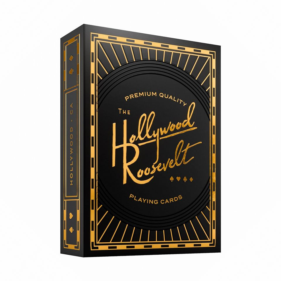 Карты "Голливуд Рузвельт", - это элегантная талия, созданная в сотрудничестве с легендарным отелем Hollywood Roasevel в Los Angeles, что из 1927 Icons, таких как Marily -Montro. Эта талия отдает дань уважения Голливудскому наследию, объединяя классический стиль с современным дизайном.
