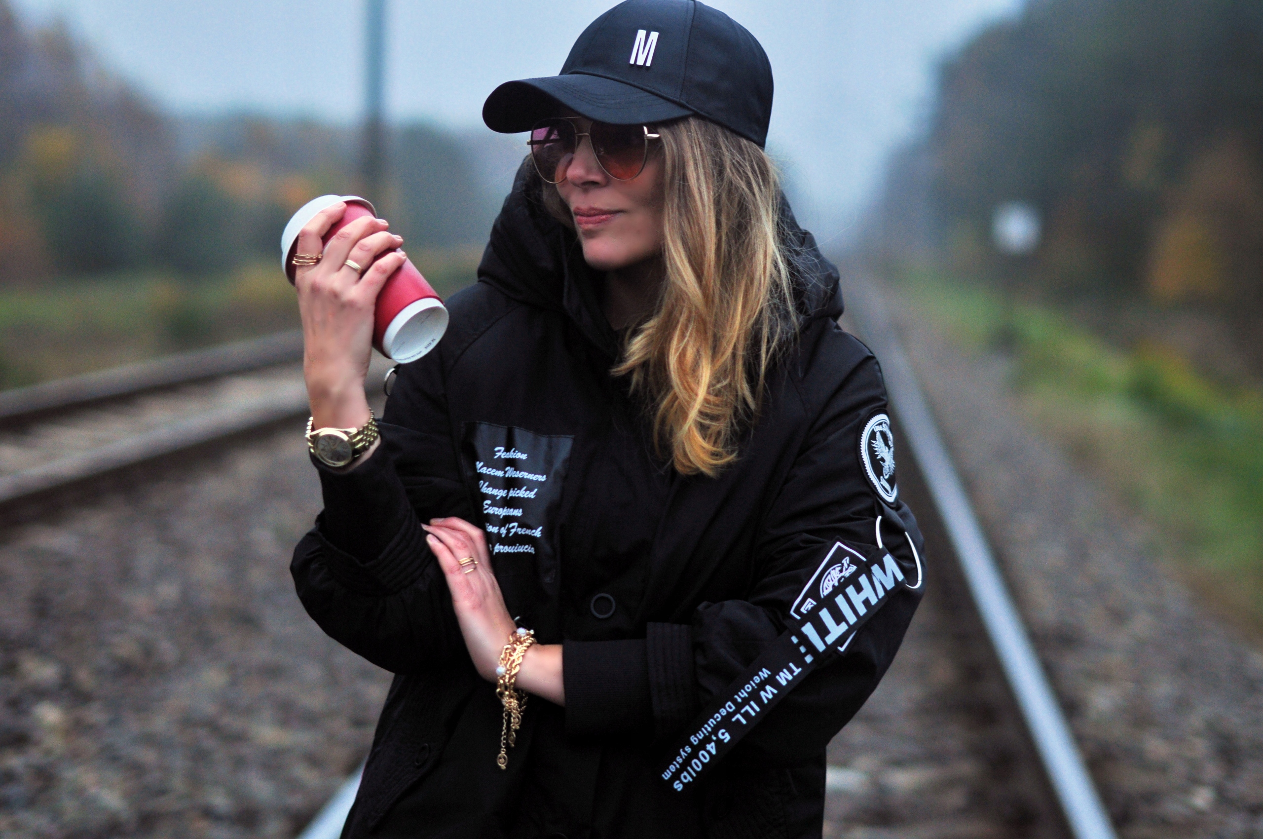 b>Куртка с длинными рукавами, отделанными широкими манжетами;