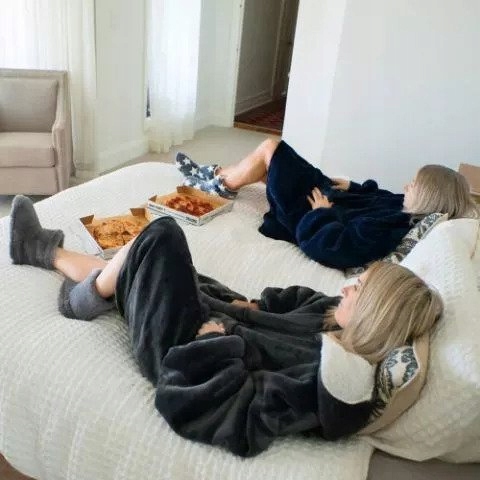 Толстовка длиной до колена, толстовка с капюшоном и одеяло согреют вас во время просмотра телевизора, чтения или отдыха во второй половине дня.