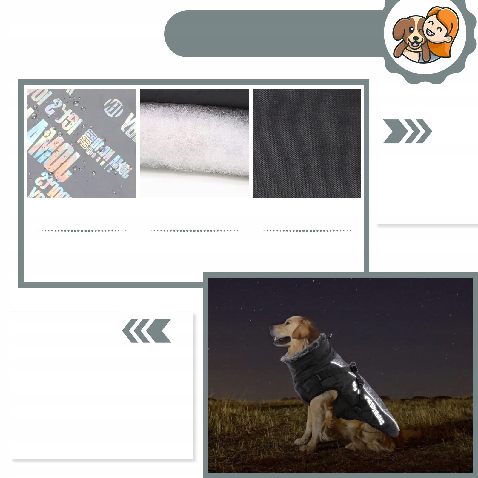 【СКЛАДНАЯ МЕХОВАЯ ПАЛЬТО ДЛЯ ГОЛЬФА】 Зимняя куртка для собак WIND RESISTANT имеет толстый и мягкий складной воротник на подкладке из искусственного меха. Эта водолазка из человечного плюша создана для защиты ушей и головы вашей собаки от холодного ветра и влаги. Благодаря двум регулируемым эластичным лентам с обеих сторон воротника вы можете отрегулировать воротник, чтобы предотвратить попадание холодного ветра и снега в пальто и сохранить тепло внутри и снаружи.