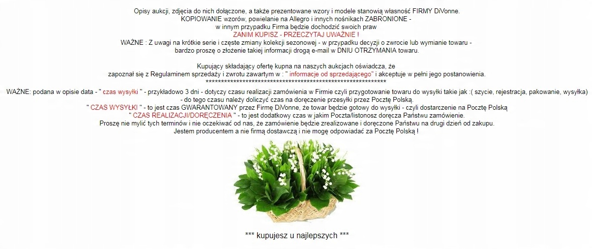 Просматривая «Тепла накидка, накидка причастя, накидка DiVon», вы можете быть уверены, что данный товар из каталога «Альби» будет доставлен из Польши и проверен на целостность. В цене товара, указанной на сайте, учтена доставка из Польши. Внимание!!! Товары для Евросоюза, согласно законодательству стран Евросоюза, могут отличаться упаковкой или наполнением.