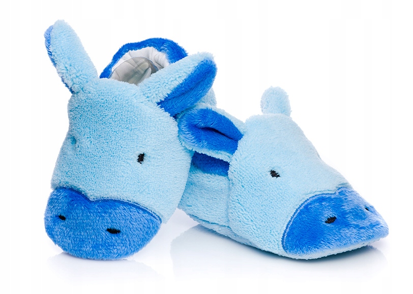 Теплые детские тапочки домашнего изготовления, полностью выполненные из трикотажной ткани, напоминающей мех. Туфли напоминают животных благодаря дополнительной вышивке и вшитым элементам. Подошва покрыта противоскользящей системой. Идеально подходит для коляски и кровати.