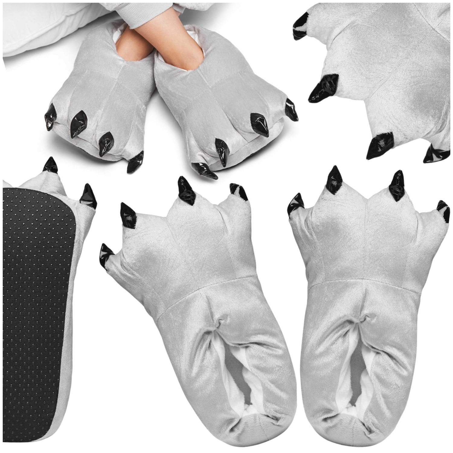 Забавные тапочки в виде лапок насыщенного серого цвета — отличная идея для подарка. Тапочки имеют универсальный размер (35-40). Они идеальны в качестве подарка – вам не нужно знать точный размер стопы получателя!
