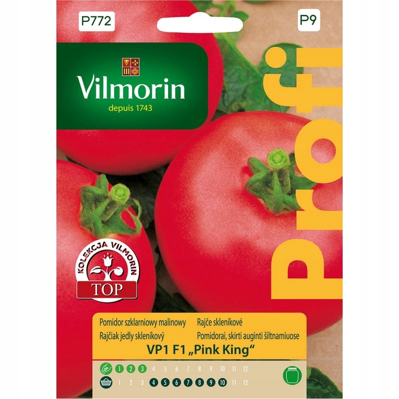 Семена томата Pink King, производитель Вильморин. Помидор Пинк Кинг — высокий тепличный сорт, требующий подпорки или крепления.