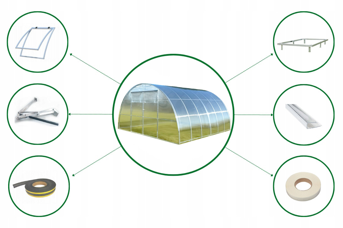 Покупайте все аксессуары для защиты, фундаменты и окна из поликарбоната по сниженной цене! Наборы расположены вверху предложения, над параметрами товара.
