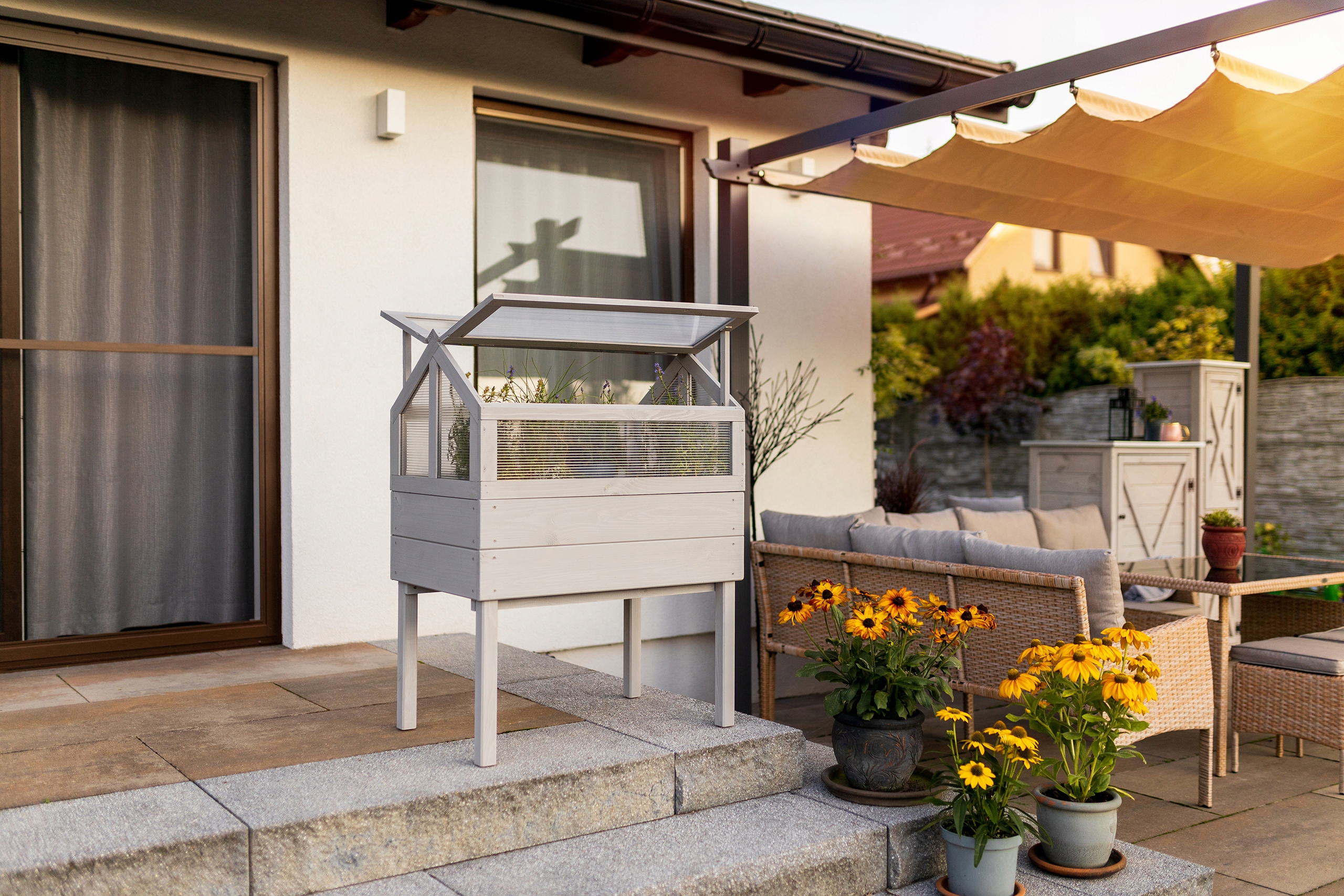 Главной особенностью теплицы является ее прочная конструкция из пропитанной сосновой древесины, что обеспечивает долговечность и устойчивость к погодным условиям. Его размеры составляют 75 x 50 x 40 см, что позволяет ему идеально вписываться в большинство горшков стандартного размера.