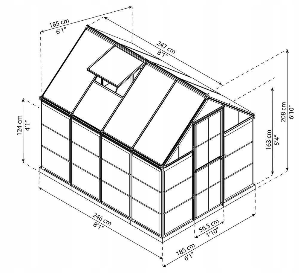 Алюминиевая теплица Palram - Canopia зеленого цвета, размеры 185х245 см, высота 208 см, с окном и поликарбонатом