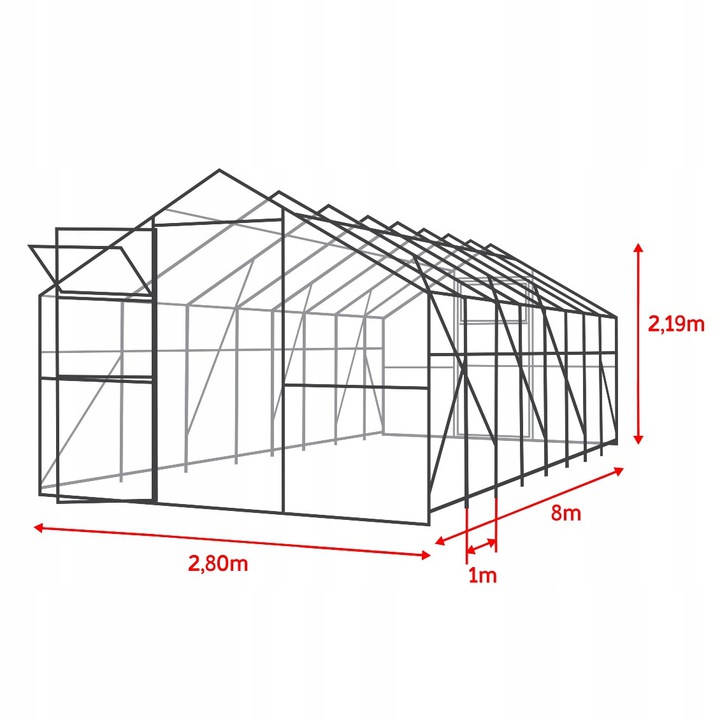 - 2 комплекта двери с окнами на обоих концах теплицы в стандартной комплектации